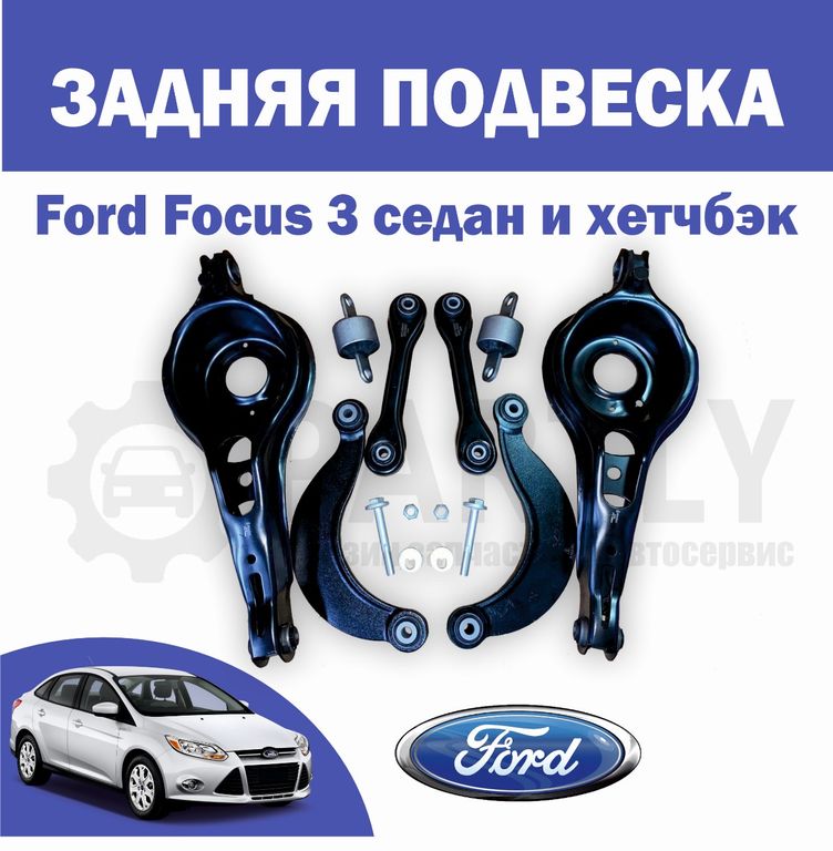 Задняя подвеска Ford Focus 3 седан и хетчбек (6 рычагов в сборе) + 2 сайлентблока продольных рычагов + 2 развальных болта в сборе.