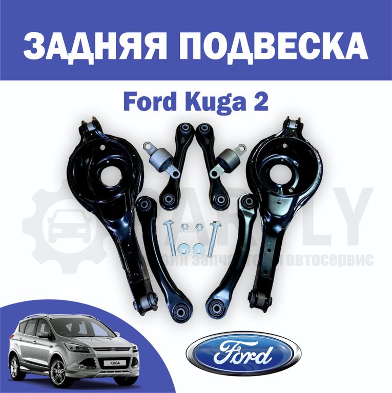 Задняя подвеска Форд Куга 2 (6 рычагов в сборе) + 2 сайлентблока продольных рычагов + 2 развальных болта в сборе.